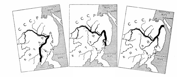 Три устья Амура. Рисунок из журнала "Вокруг света", 1957, №5 “Летом 1956 года на берегах Амура появилось много новых людей. Их встречали в тайге искатели золота и заветного “корня жизни” ― женьшеня. Люди говорили на разных языках ― на русском и китайском, но хорошо понимали друг друга. Они забирались в таежную глухомань и карабкались на отвесные берега, нависшие над водой. Их донимала таежная мошкара, дорогу им преграждали болота и бурелом, но люди упрямо шли дальше. А на реке появилась целая флотилия небольших пароходов и катеров. На их мачтах развевались китайские и советские флаги”. (журнал “Вокруг света”, №5 1957 г.) Волны ХХ съезда КПСС уже начали подмывать советско-китайские отношения, но сотрудничество между странами пока еще развивалось довольно бурно. Одним из совместных проектов должно было стать создание Объединенной советско-китайской энергосистемы мощностью 8-9 млн. квт. Но для этого требовалось развернуть Амур в сторону Китая! В августе 1956 года страны подписали спец