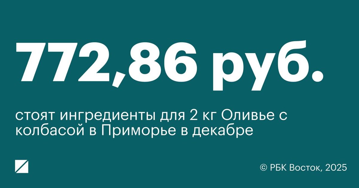 💰 По подсчетам РБК Приморье, медианная стоимость всех ингредиентов оливье с колбасой по классическому рецепту за неделю до Нового года в