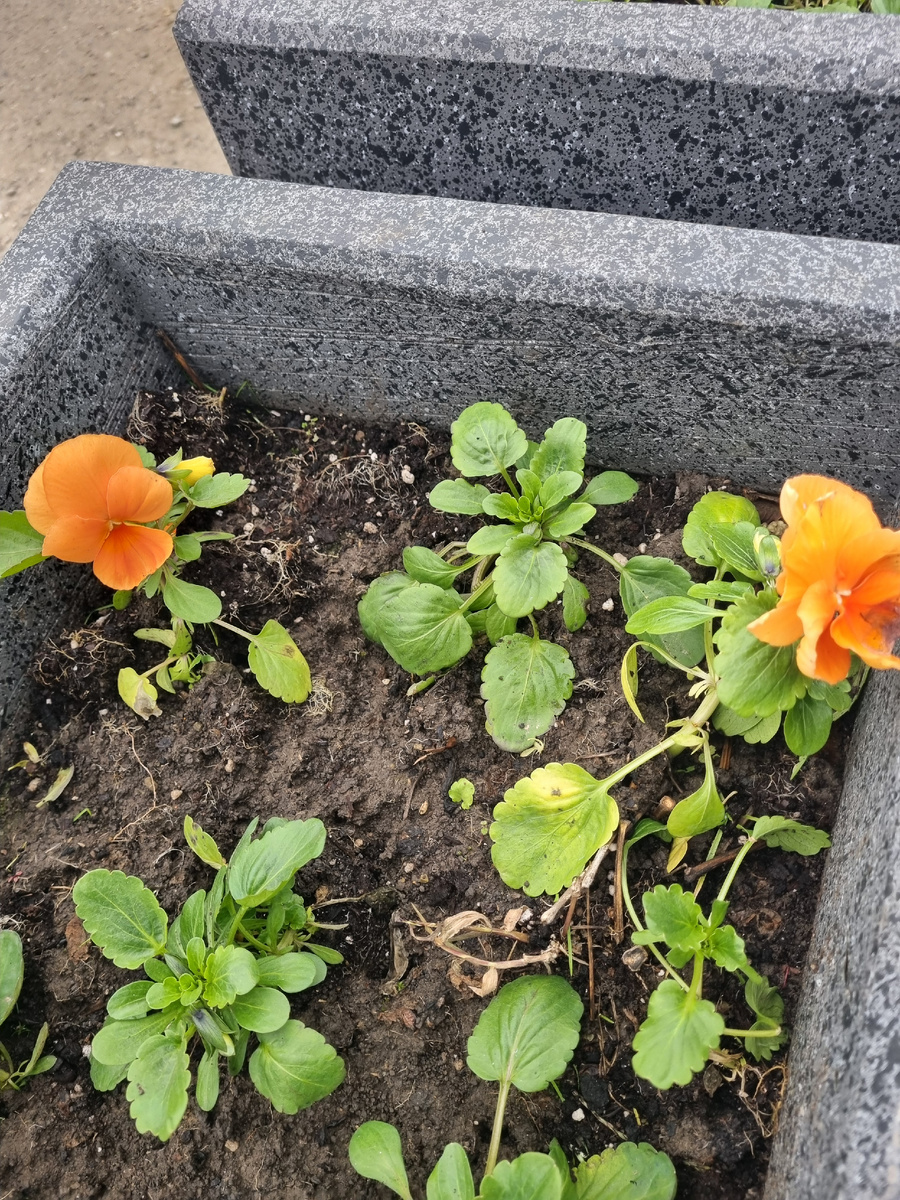 Вчера вышла на прогулку и сюрприз, на место высохших и испорченных от инея бальзаминов, высажены мои любимые виолы.
