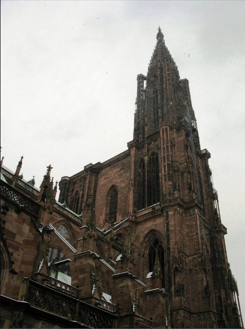 Страсбургский кафедральный собор был самым высоким зданием в христианской Европе, а значит, и во всём просвещённом мире, больше двухсот лет – с середины пятнадцатого века до второй половины девятнадцатого. И всё это время великая колокольня, устремлённая в небесную высь, привлекала множество любопытных. Автор книги о великих легендах Франции Эдуард Шюре и сейчас советует подняться на крышу собора: Следует побродить по крыше собора, среди фантастических существ – горгулий – и ангелов пинаклей. Пинакль – одна из примет готической соборной архитектуры, небольшая декоративная башенка на крыше, увенчанная шатром-фиалом, на вершине которого крестоцвет. Стремление подняться на самую вершину и обозреть подлунный мир с высоты свойственно многим людям. Но сейчас для этого нужно взобраться на Эверест, что не каждому под силу. Тем не менее, желающие находятся. А с шестнадцатого по девятнадцатый век для того, чтоб оказаться выше других, достаточно было взойти по многочисленным ступеням на колокольн