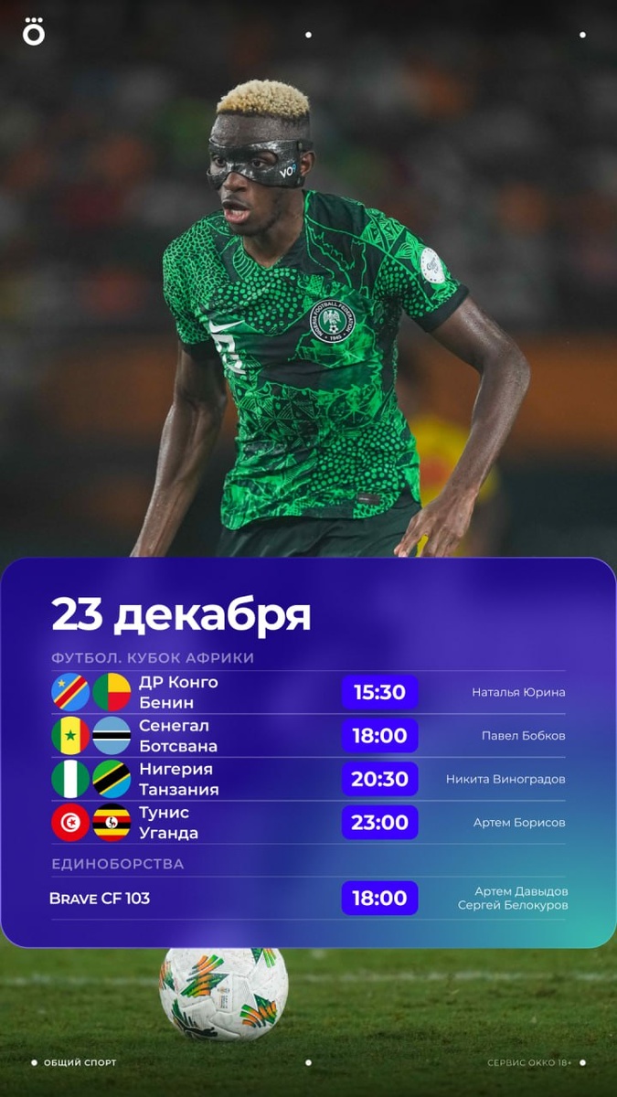 Матчи в группах C и D в рамках Кубка Африки и 7 встреч в баскетбольной Евролиге — смотрим в этот вторник в Okko! 🙌🏻 https://okko.tv/s/4ot