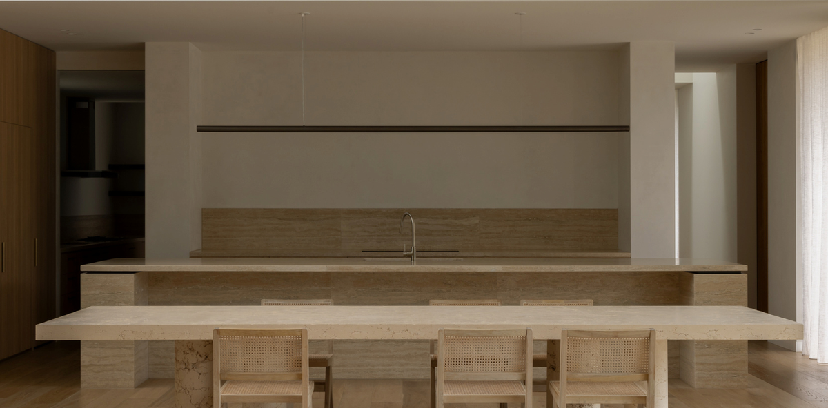 Кухня перестала быть изолированным утилитарным помещением и всё чаще интегрируется в общее жилое пространство, становясь частью гостиной и столовой зон. В этом контексте она воспринимается не только как функциональная зона, но и как полноценный элемент интерьера, сопоставимый с мебелью и архитектурными деталями. Отсюда и устойчивый интерес к минимализму: строгие геометрии, безупречно чистые линии, гладкие фасады без визуального «шума». В предельном выражении такая кухня способна существовать почти как арт-объект, сохраняя эстетическую ценность даже вне активного использования. Эта тенденция сформировалась не внезапно, она отражает глубинные изменения образа жизни и бытовых сценариев. Если ранее кухня была закрытым пространством, предназначенным исключительно для приготовления пищи, то сегодня она все чаще становится центром дома. Здесь пересекаются семейные маршруты, принимают гостей, экспериментируют с гастрономией и проводят значимую часть повседневной жизни. Современные кухонные те