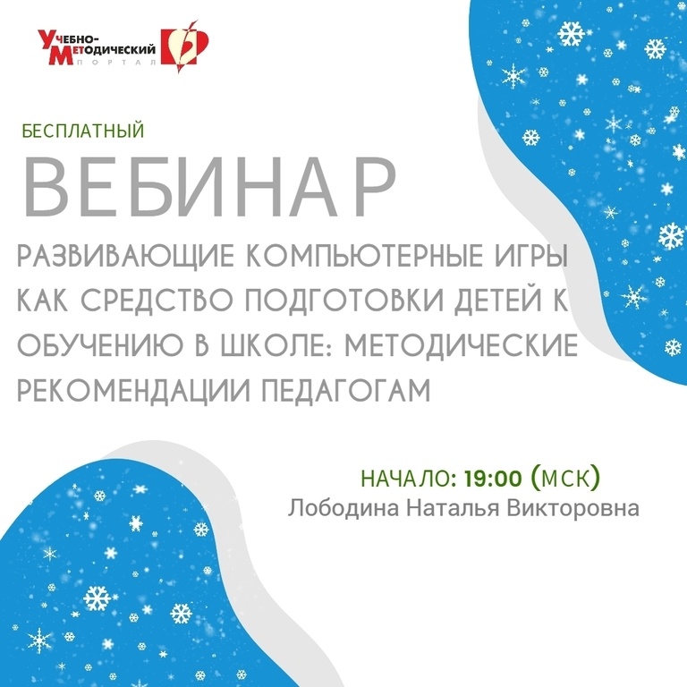 Вебинар «Развивающие компьютерные игры как средство подготовки детей к обучению в школе: методические рекомендации педагогам