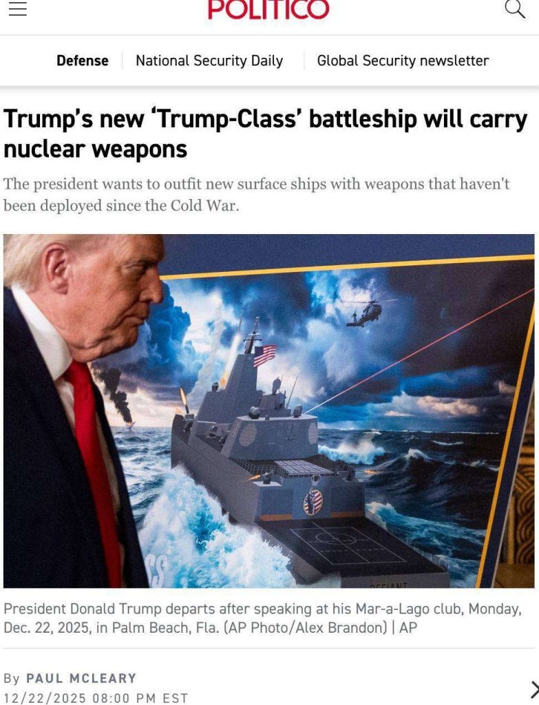 Заявления Дональда Трампа о способности США построить новые боевые корабли класса «TRUMP CLASS» всего за 2,5 года оказались под серьезным сомнением. Издание Politico* сообщает, что такие амбициозные сроки, вероятно, будут «почти невозможными» для соблюдения, учитывая множество нерешенных проблем. Главной проблемой является полное отсутствие инженерно-технической документации для анонсированных на брифинге в Мар-а-Лаго линкоров. «Пока у Америки нет даже проекта линкоров ТRUMP CLASS» — отмечает Politico. Кроме того, проект предполагает использование технологий, которые никогда ранее не применялись одновременно на одном корабле: гиперзвуковое оружие, лазерные системы и ядерные ракеты. Эти передовые разработки требуют колоссальных инвестиций, однако в текущем бюджете Пентагона финансирование подобных программ пока отсутствует, что делает сроки начала работ абсолютно неопределенными. Издание также указывает на хронические трудности Военно-морского флота США с соблюдением сроков и бюджетов с