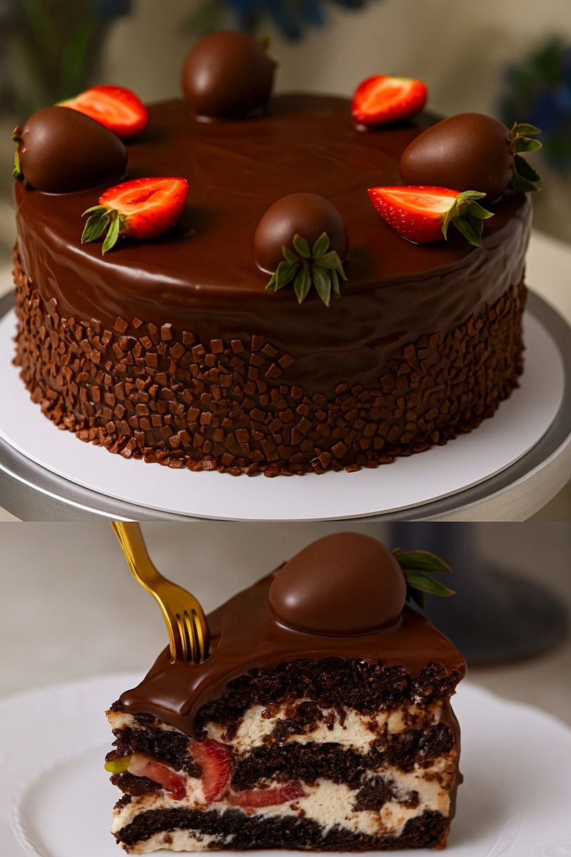 Шоколадный бисквит, нежнейший крем, сочные фрукты и бархатный ганаш создают идеальную гармонию вкусов. А клубника в шоколаде — это просто классика, от которой невозможно отказаться. Обязательно приготовьте — это рай в каждом кусочке! 🍓🍫