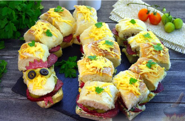- Багет: Французский багет — это идеальный выбор для создания хрустящей основы. Он хорошо удерживает начинку и отлично поддается нарезке.