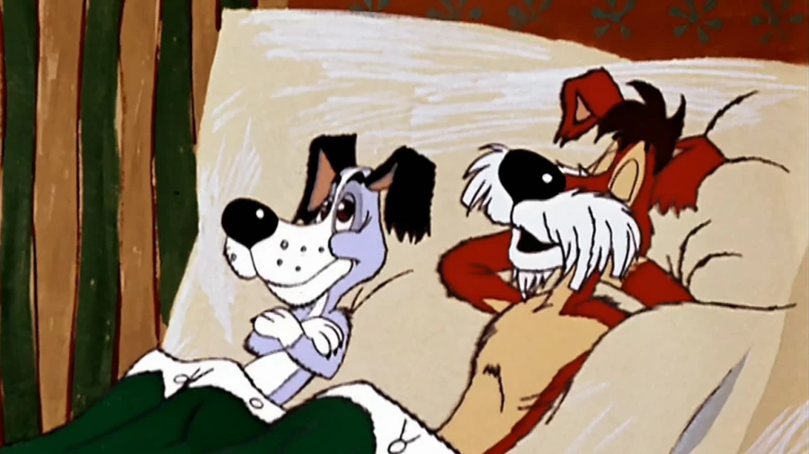 1. Этот стоп-кадр с псом, беззаботно валяющимся на диване, — символ ролевой инверсии и временного нарушения иерархии. Из какого мультфильма о гостеприимстве и его последствиях этот кадр?