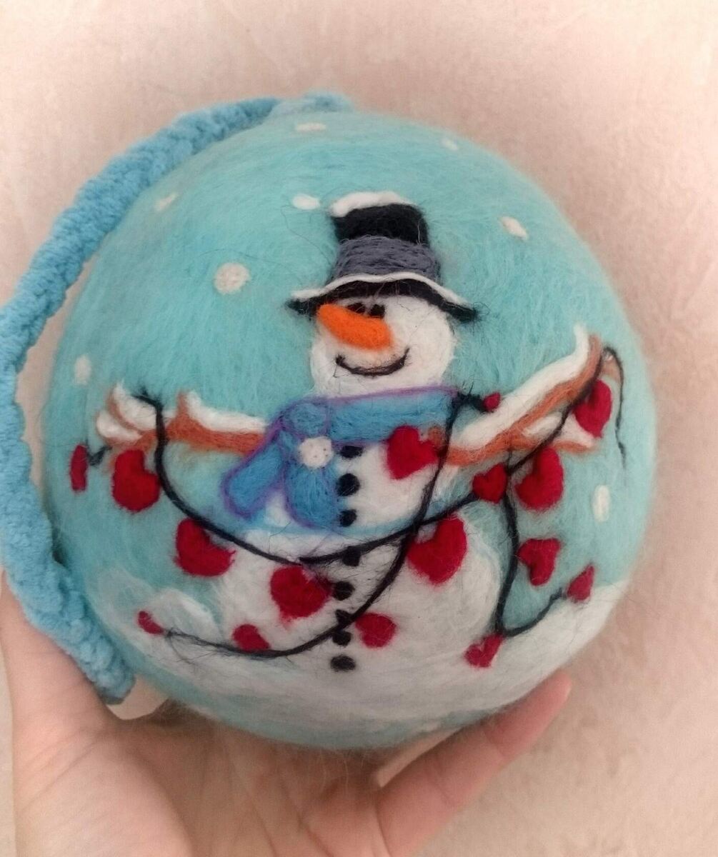 несколько лет назад первый раз попробовала сделать из шерсти большой шар для уличной ёлки. И скажу честно это самые "интересные" для меня игрушки на ёлку. Во-первых это не просто шал, а целая картина, Во- вторых очень практичная игрушка! очень легкая, не бьется, не ломается ( даже если произошел казус... картинку можно легко восстановить или совсем поменять, сделать новую), В-третьих это