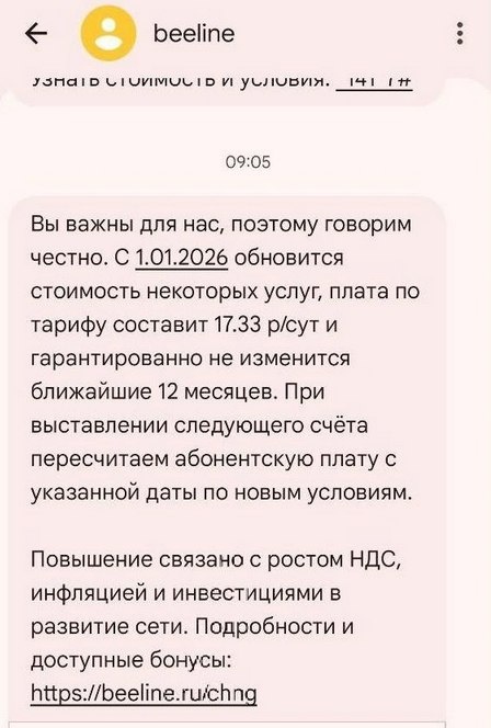 📝 Кратко: Сотовые операторы и провайдеры связи начали предупреждать абонентов об увеличении тарифов с января 2026 года из-за новой ставки НДС, инфляции, роста цен на строительство и развитие сети, а также необходимости инвестиций в развитие своей инфраструктуры. Читать далее 🔗 Читать оригинальную статью (ссылка) 📊 Источник: Habr ⏰ Время: 23.12.2025 05:22 📱 Другие каналы: 🪙 ВКрипту | 🎮 ВИгрухи | 🏎️ ВТачки | ✈️ ВТравелу #gadgets #гаджеты #технологии