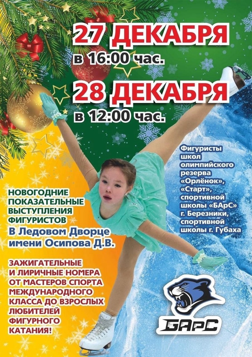⛸В Березниках пройдут новогодние показательные выступления фигуристов