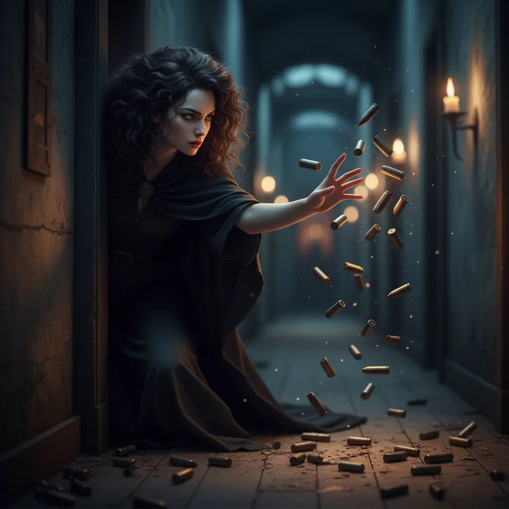 Беллатриса проехала по гладкому полу и в последний момент успела скрыться за поворотом. Пуля попала в нескольких сантиметрах от неё, и белое облачко вспорхнуло.