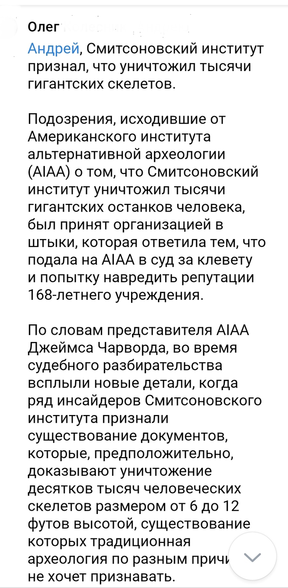 Ну ничего себе = оказывается уже даже учёные признались, что уничтожали останки гигантов. Вот совсем официалы не стыдятся! Похоже перед нами очередная история, требующая проверки.