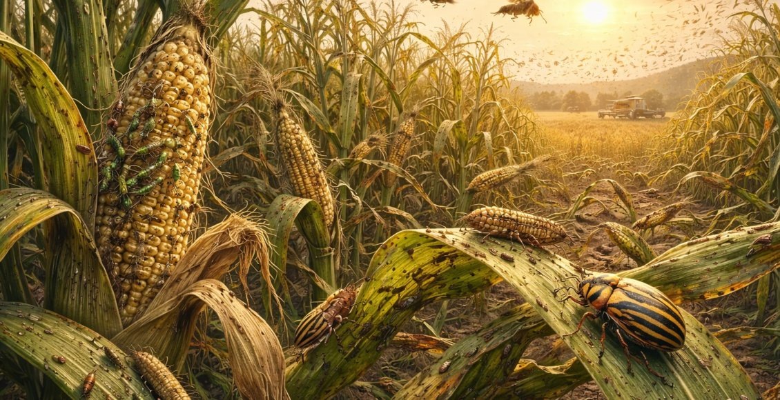 Климатическое изменение ускоряет распространение и активность сельскохозяйственных вредителей, что ведёт к росту потерь урожая основных зерновых культур. Об этом свидетельствует новый анализ, опубликованный в научном журнале Nature Reviews Earth & Environment, привлёкший внимание исследователей продовольственной безопасности. По оценкам авторов исследования, во всём мире уже сейчас вредители и болезни уничтожают около 40 % производимых сельскохозяйственных культур. С потеплением климата таких потерь может стать ещё больше: при росте средней температуры на 2°C ожидаемые потери урожая от вредителей могут увеличиться примерно на 46% для пшеницы, на 19% для риса и на 31% для кукурузы. Эти культуры являются базовыми источниками калорий для значительной части населения планеты. Участие климатического фактора заключается в том, что повышение температур облегчает вредителям развитие, ускоряет размножение и способствует расширению ареалов. Тепло делает возможным выживание видов в регионах, кото