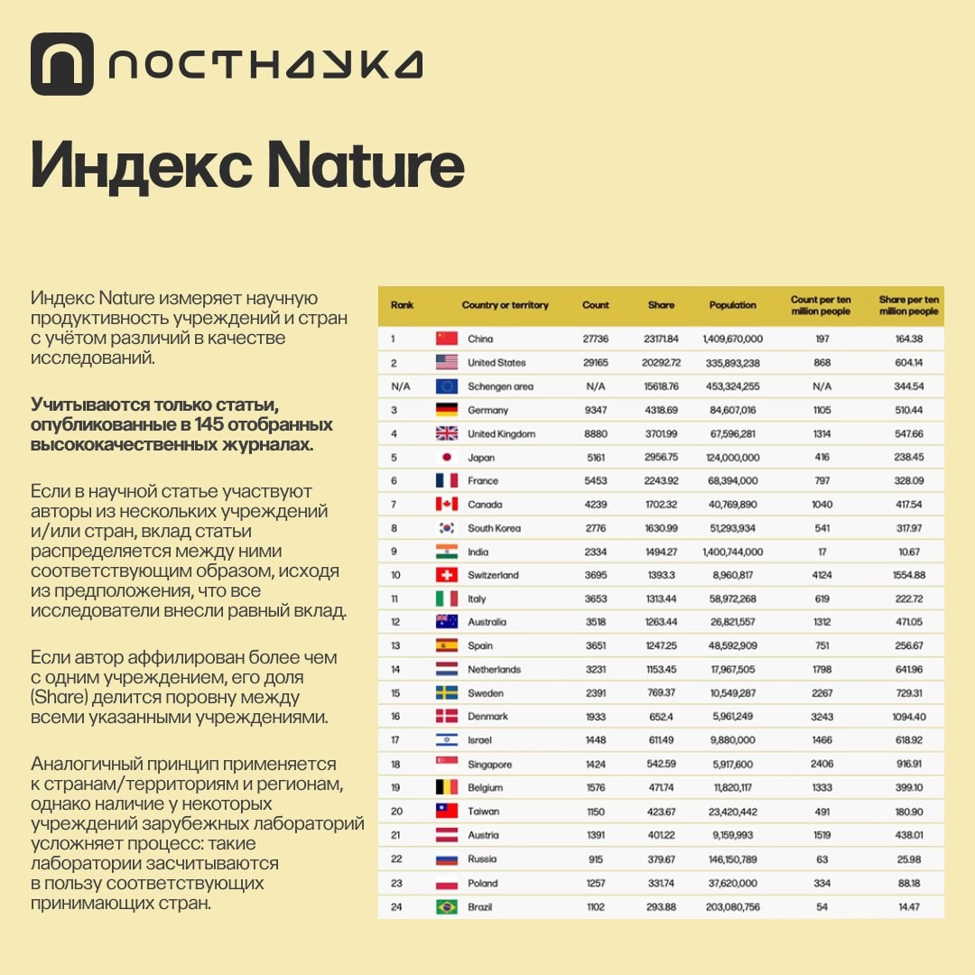 «Индекс Nature показывает не просто, сколько публикаций создаётся в стране, а сколько среди них значимых