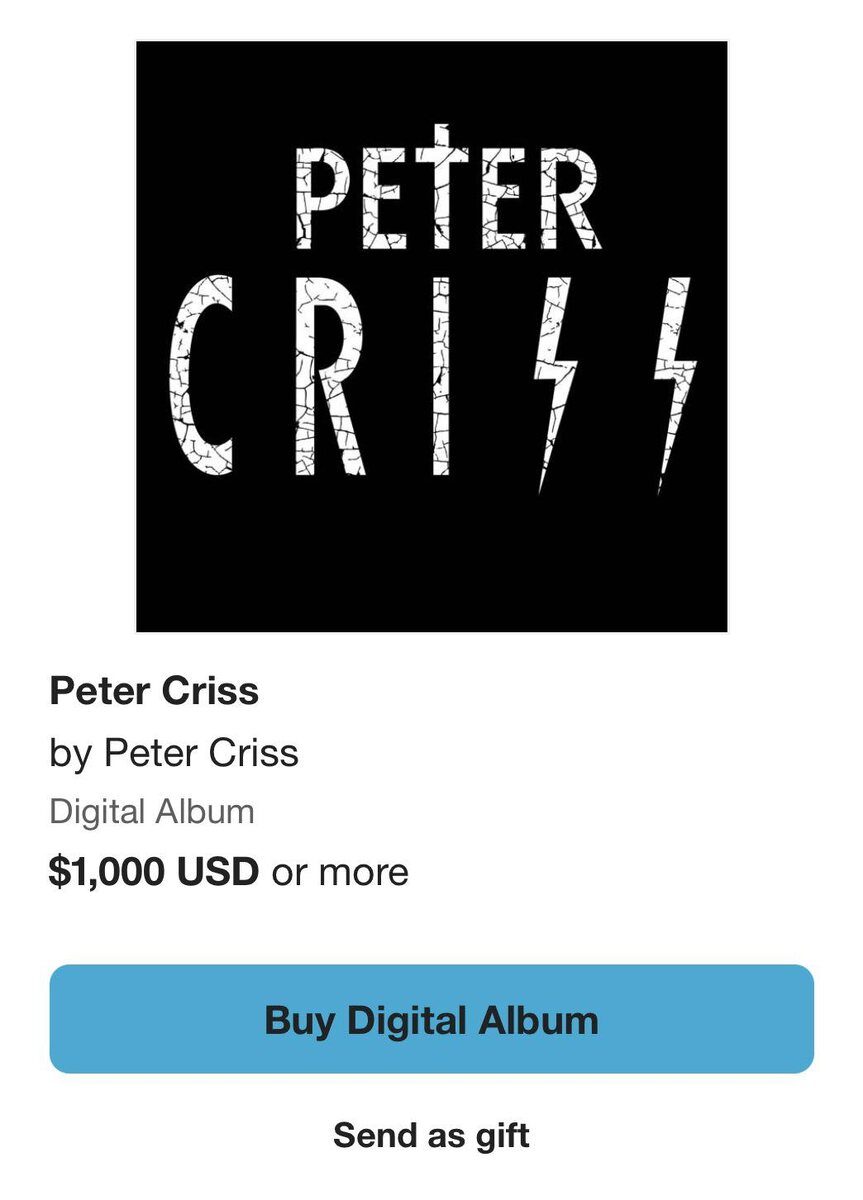 На странице оригинального ударника KISS на Bandcamp предлагается одноименный альбом Питера на виниле за 32,98 доллара и на компакт-диске за 14,98 доллара, но при этом указана цена в 1000 долларов за цифровую версию альбома. На сайте также указано, что CD и виниловые издания Peter Criss поставляются с кодом для скачивания. «Цифровые покупки не рекомендуются», говорится в примечании на странице Крисса на Bandcamp. «Поэтому такая высокая цена». Поклонники и СМИ предположили, что музыкант таким образом хочет стимулировать продажи на физических носителях, так как при их покупке цифровой код для скачивания выдается бесплатно. Чтобы прояснить ситуацию, Питер Крисс поделился в соцсетях следующим сообщением: