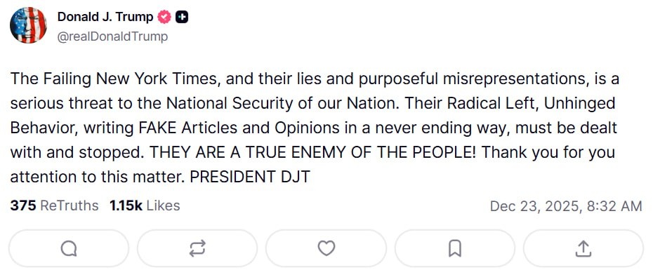 New York Times is a 'serious threat to the National Security' — Trump