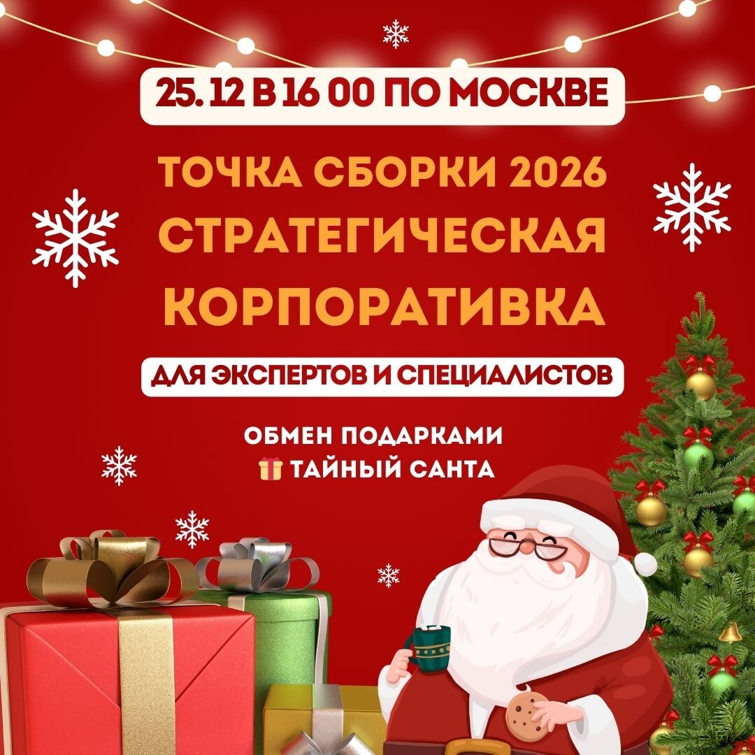 для экспертов и помогающих практиков 25 декабря в 16 00 по МОСКВЕ Это не праздничный огонёк, эфир «для настроения» и встреча ради галочки. Корпоративка — точка, где ты закрываешь 2025 и принимаешь решения на 2026. Если ты: много делаешь, но доход нестабилен устала от хаоса и постоянных перестроек понимаешь, что «как раньше» уже не работает не хочешь начинать январь с догадок и откладывания — тебе сюда. Что будет на корпоративке: 👒 увидишь, где именно в 2025 терялись деньги и энергия 👒 поймёшь, почему январь у многих “сливается” 👒 зафиксируешь фокус и приоритет на старт 2026 👒 выйдешь с ощущением опоры и пониманием следующих шагов Формат: 🤝 нетворкинг с фокусом без воды, стратегическое погружение и практическая работа 🎅Тайный Санта для экспертов - формат знакомства, партнёрств и обмена ценностью, где участники корпоративки смогут презентовать свой подарок или полезный бонус, принять участие в обмене подарками и получить ценные подарки от других экспертов. В финале я предложу