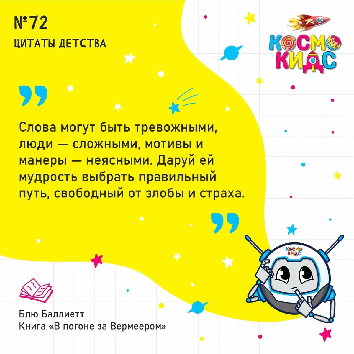 «Слова могут быть тревожными, люди — сложными, мотивы и манеры — неясными. Даруй ей мудрость выбрать правильный путь, свободный от злобы и страха» Блю Баллиетт, «В погоне за Вермеером» ------------------------— Ждём вас в детском саду и на занятиях в #КосмоКидс! Быстрая связь с нами: kosmokids.online #космокидс #детскийсад #дети #космокидсдетям #цитаты #детскиекниги #детскиецитаты