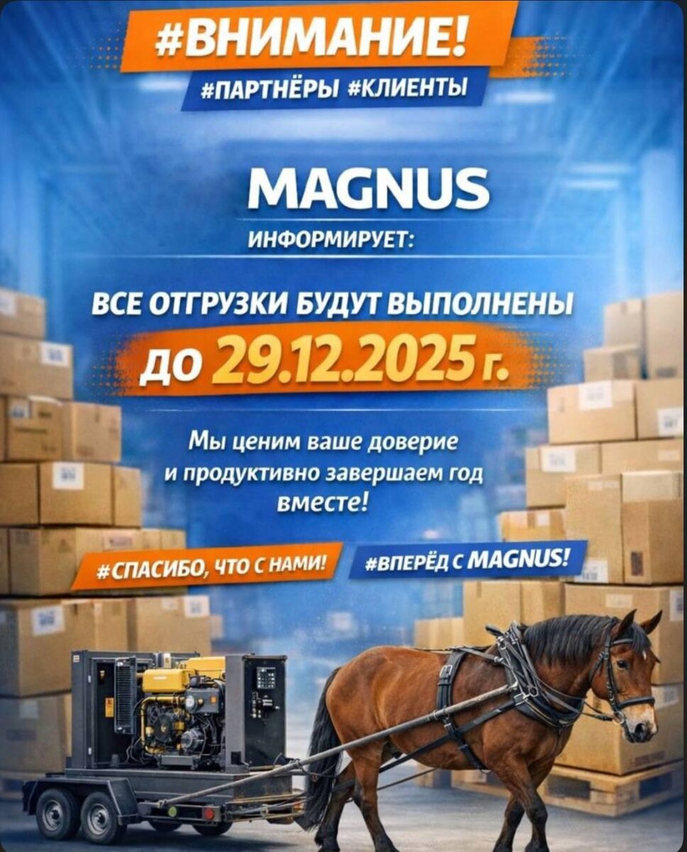 Компания MAGNUS сообщает, что все отгрузки будут произведены до 29.12.2025 года.