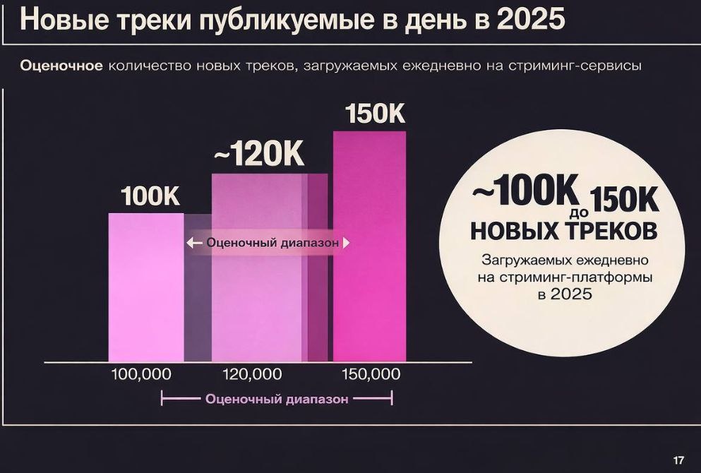 Цифра дня: 150 000 новых треков публиковалось на стримингах КАЖДЫЙ ДЕНЬ в 2025 году