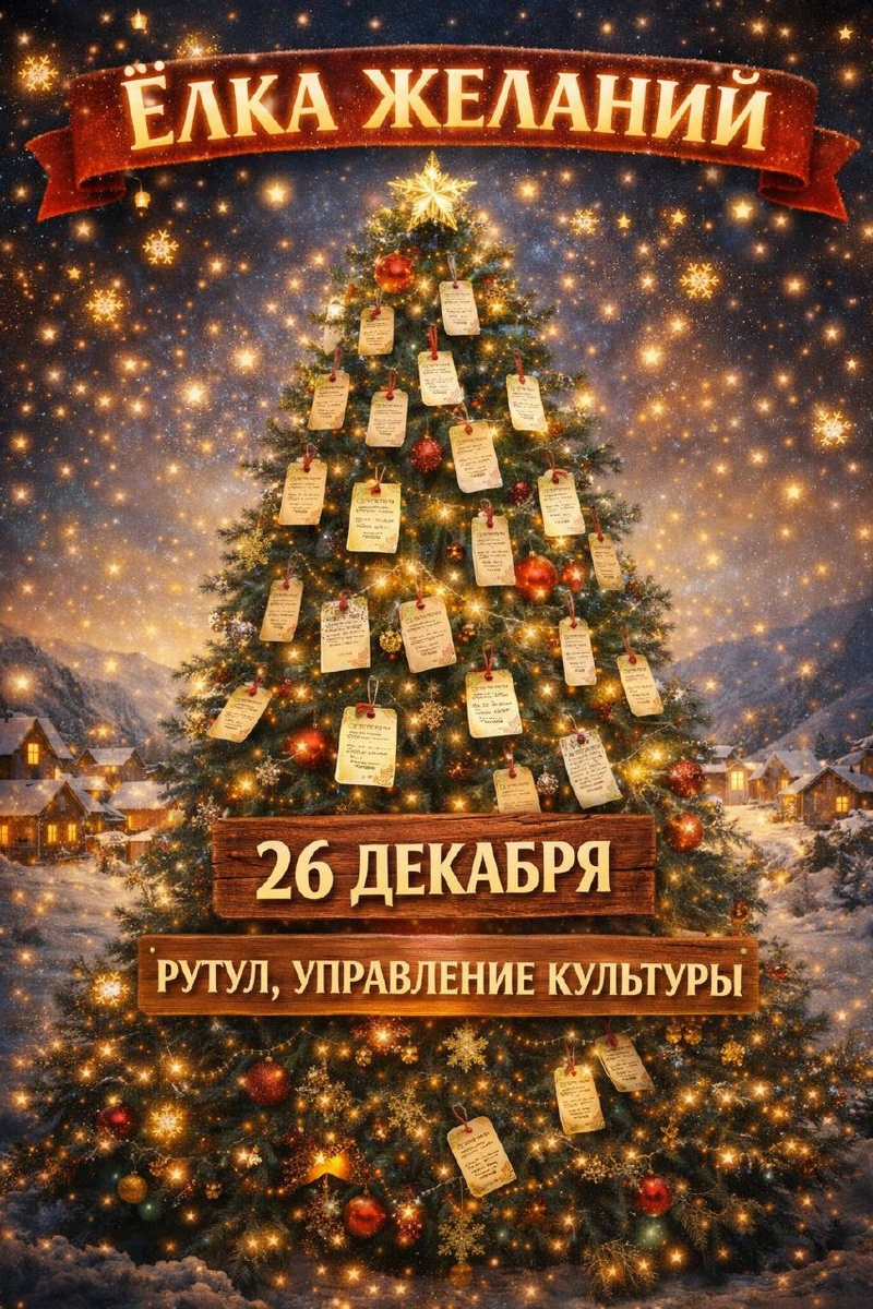 С одного шага. С одного решения зайти и выбрать карточку. В нашем районе стартовала акция «Ёлка желаний». Та самая история, где взрослые могут на время стать волшебниками. Без громких слов. По делу. Для детей, которым особенно важно почувствовать внимание и тепло. В Управлении культуры уже стоит ёлка. На ней детские желания. Очень разные. Книга. Мягкая игрушка. Спортивная форма. Маленькая мечта, записанная неровным почерком. Читаешь и невольно останавливаешься. Думаешь. Да, это важно. 26 декабря 2025 года. Село Рутул. Управление культуры. Приходите. Выбирайте карточку. Исполняйте желание. Всё просто. И в этом вся сила. На месте будут волонтёры Движения первых. Будет и репортёр Насир Юсуфов. Но главное там будут дети. Точнее их ожидание чуда. Каждый, кто откликнется, сделает больше, чем подарок. Он зажжёт ту самую искорку в глазах. Ради которой, если честно, всё и затевалось. Не откладывайте. Новый год уже рядом. Давайте сделаем его настоящим. Оргкомитет