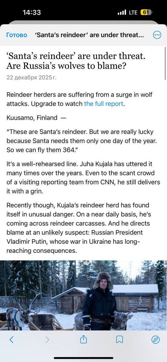 ! Теперь под санкции, видимо, попадут российские волки, которые кошмарят, как полагают журналисты CNN и финские эксперты, лапландских оленей. Логика понятная: тот, кому Санта не принесет подарок, должен четко усвоить - виноваты русские, пусть даже волки. Может, это западная зооместь за подсвинков? Сальное Дифлопэ