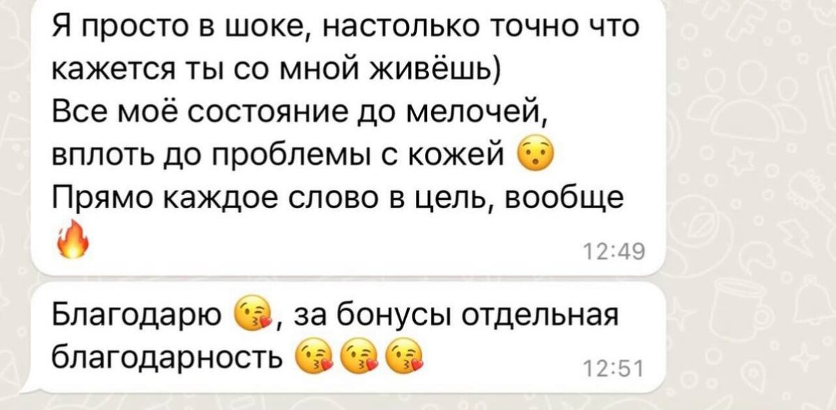 … Очень часто отзывы от сессий начинаются именно со слов - «Я в шоке!». Да и что говорить, сколько я работаю уже с диагностиками и тоже до сих пор в шоке насколько быстро, четко и глубоко через этот инструмент можно получить информацию! 📍Диагностические карты уникальны и у них нет аналога в МИРЕ! ❓Хотите получать точную, правдивую и глубокую информацию? Записывайтесь на онлайн-интенсив и научитесь👌 Диагностика - это ключ к управлению вашей реальностью! Она работает сразу в нескольких направлениях: ⁃ Успокаивает, дает понимание и осознание происходящих процессов. ⁃ Показывает, что все хорошо и вы можете управлять жизненными процессами. ⁃ Предлагает правильное решение вашего вопроса. ⁃ Помогает формировать свое будущее. ⁃ Трансформирует сразу при прослушивании. ‼️Плюс, следуя рекомендациям диагностических карт, вы значительно сокращаете себе путь до нужной именно Вам цели! А время, как вы знаете, ценный ресурс нашего времени и он не восполняется. ✍️Записаться на онлайн-интенсив
