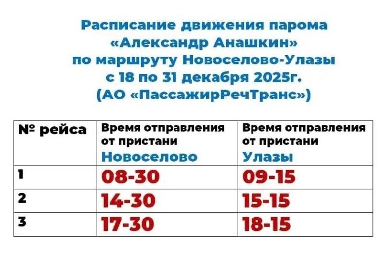 Изменилось время отправления парома Новоселово-Улазы