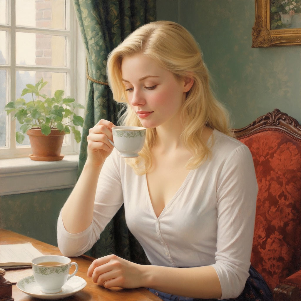Её собеседница, Марина, задумчиво покрутила в руках изящную ложечку. За окном медленно опускались сумерки, а в уютной кухне пахло ванилью и свежезаваренным чаем — Ольга всегда умела создать атмосферу домашнего тепла. Тонкие лучи закатного солнца пробивались сквозь кружевные занавески, рисуя на столе причудливые узоры. На стене тихо тикали старинные часы, отсчитывая мгновения покоя.