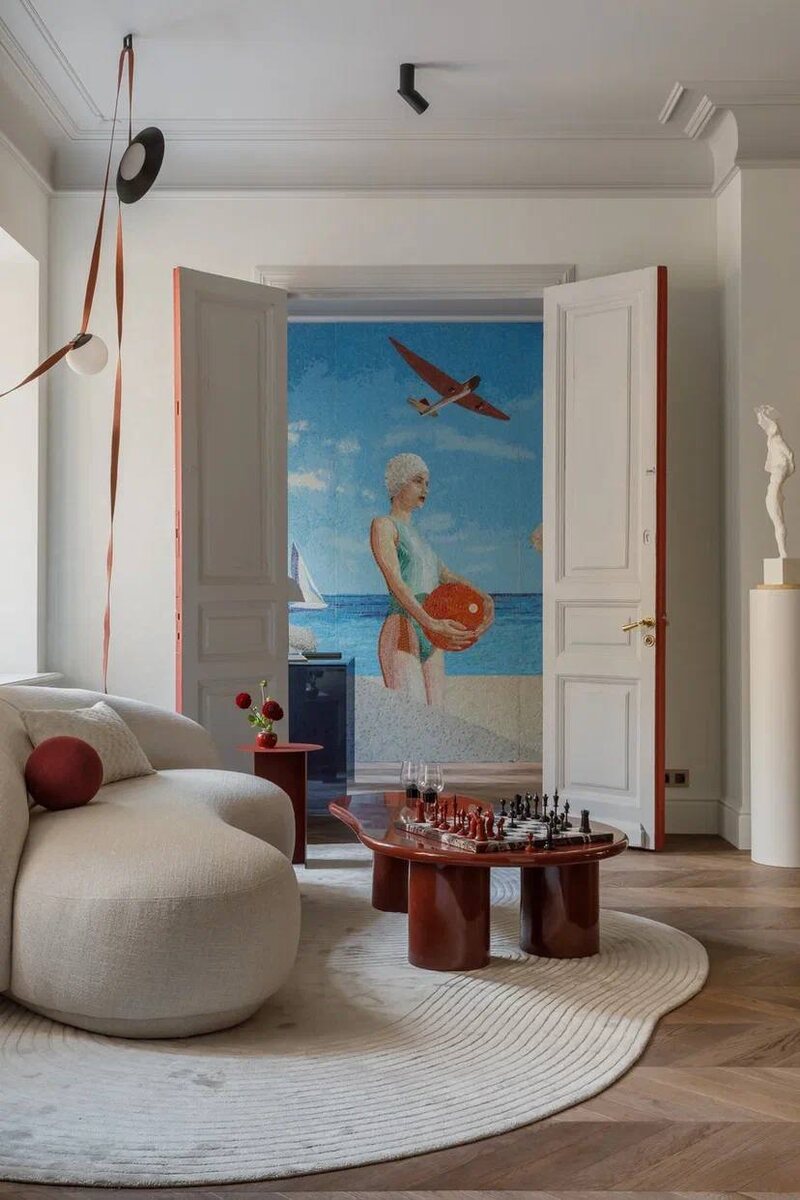 Цель – не просто реконструкция, а переосмысление исторического пространства с сохранением его уникальных элементов. Интерьер соединяет классическую элегантность и современные акценты. Исторические двери и обеденный стол были восстановлены Александром Мершиевым, а декоративные элементы Orac помогли подчеркнуть архитектурную логику пространства, деликатно поддерживая её. Мозаика «Начало» и элементы, отражающие советскую эпоху, создают атмосферу диалога между прошлым и настоящим. Проект представляет собой не только реставрацию, но и воссоздание места, где каждый предмет хранит воспоминания. Архитектурные элементы Orac в проекте: ▫️ карнизы C342, C343 ▫️ молдинг P8030 ▫️ угловой элемент P8030D ▫️ плинтус SX206 ▫️ розетка R08 Заказчик: Ирина Кузнецова Архитекторы: Варя Шалито и Михаил Волович Стилист: Светлана Носова Фотограф: Михаил Чекалов Узнайте больше об этом проекте на страницах архитектурного интернет-издания INTERIORS