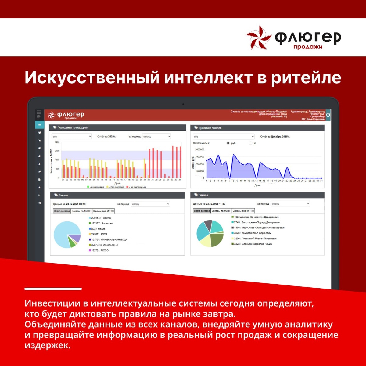 В мире ритейла и дистрибуции искусственный интеллект перестал быть концепцией будущего — он стал рабочим инструментом, который уже сегодня решает конкретные бизнес-задачи. В ближайшие годы искусственный интеллект станет не преимуществом, а стандартом для выживания на рынке. Крупнейшие мировые сети активно внедряют ИИ, чтобы получить неоспоримое конкурентное преимущество. 📎Персонализация станет сквозной: от купона в приложении до рекомендации консультанта в магазине, который видит историю покупок клиента на планшете. На первый план выйдет задача объединения данных из онлайн- и офлайн-каналов в единый профиль клиента — это станет главным технологическим вызовом для ритейлеров. Алгоритмы перешли от простых рекомендаций «кто купил А, купил и Б» к комплексному анализу поведения в реальном времени. Тренд подпитывается доступностью готовых облачных решений, позволяющих даже малому бизнесу запускать точечные предложения. «Флюгер-Продажи» активно интегрирует технологии искусственного интел
