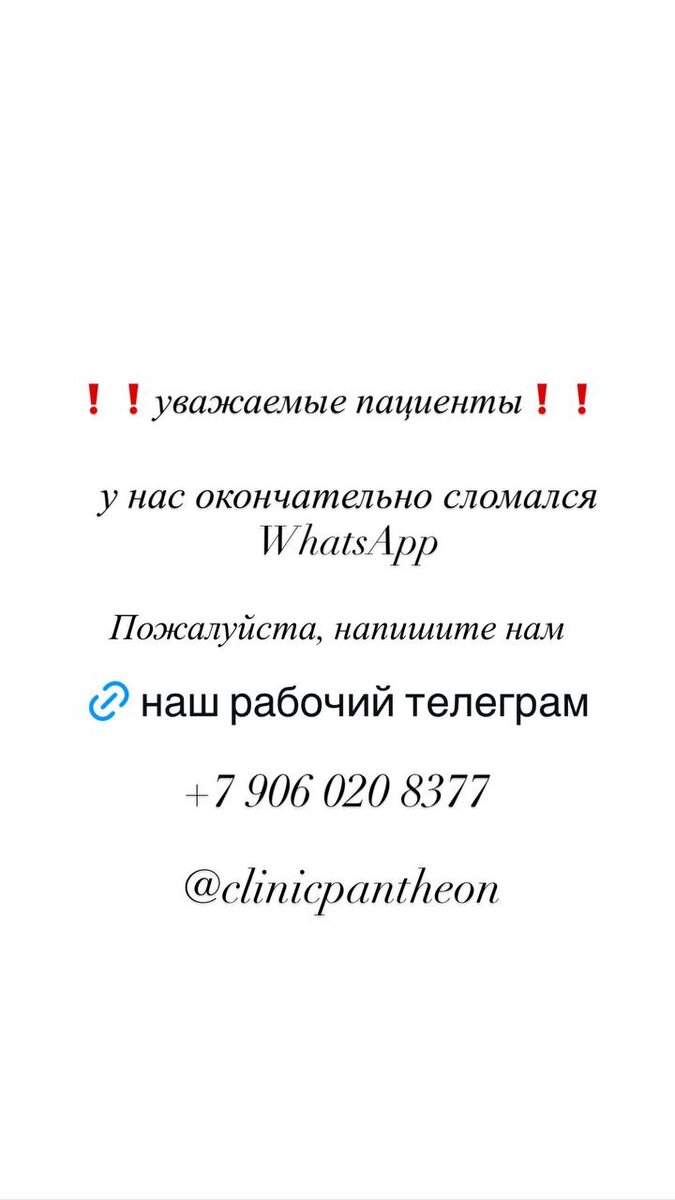! Пожалуйста, по всем вопросам пишите в наш телеграм @clinicpantheon