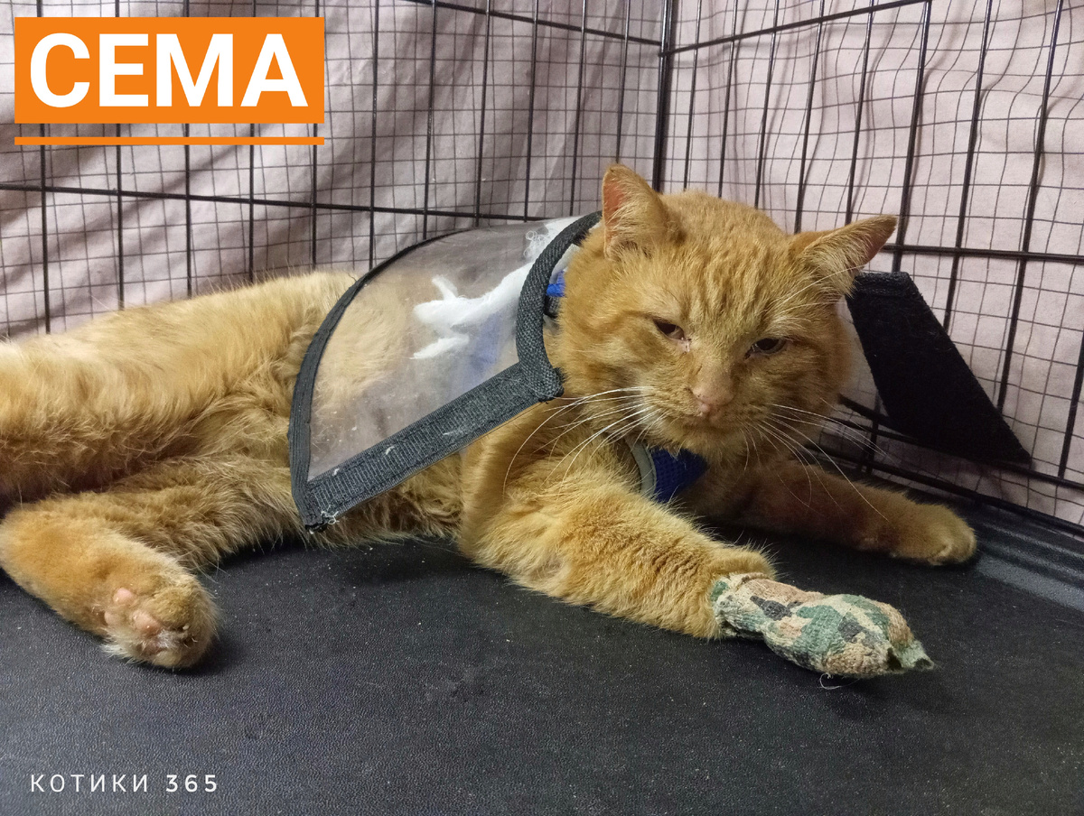 Носить защитный воротник Сëме очень не нравится.