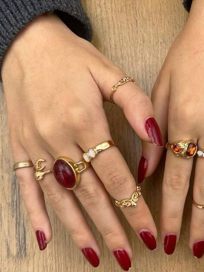 Самые трендовые украшения сезона — кольца в винтажном стиле. Из главная особенность — крупные камни или минералы.