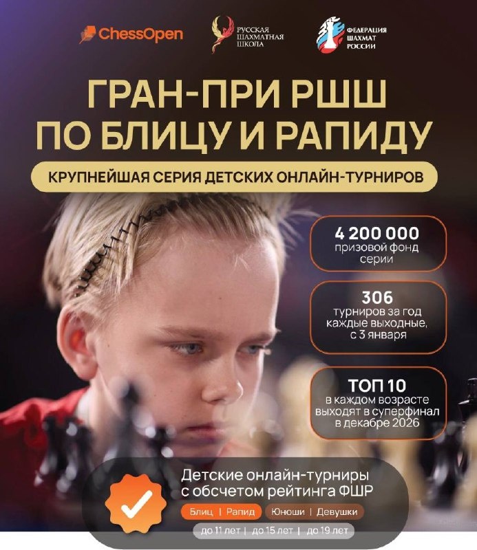 Π½Π° ΡΠΎΡΡΠΈΠΉΡΠΊΠΎΠΉ ΠΈΠ³ΡΠΎΠ²ΠΎΠΉ ΠΏΠ»Π°ΡΡΠΎΡΠΌΠ΅. ΠΠ°ΡΠ°ΡΠΎΠ½ ΠΎΠ½Π»Π°ΠΉΠ½ ΡΡΡΠ½ΠΈΡΠΎΠ² ΠΏΡΠΎΠΉΠ΄Π΅Ρ Π½Π° ΠΏΠ»Π°ΡΡΠΎΡΠΌΠ΅ ChessOpen.ru Π΄Π»Ρ ΡΡΠ°ΡΡΠ½ΠΈΠΊΠΎΠ² Π΄ΠΎ 11, 15 ΠΈ 19 Π»Π΅Ρ. Β«ΠΡΠ°Π½-ΠΏΡΠΈ Π Π¨Π¨ ΠΏΠΎ Π±Π»ΠΈΡΡΒ» ΠΈ Β«ΠΡΠ°Π½-ΠΏΡΠΈ Π Π¨Π¨ ΠΏΠΎ ΡΠ°ΠΏΠΈΠ΄ΡΒ» ΠΏΡΠΎΠ²ΠΎΠ΄ΡΡΡΡ ΠΏΡΠΈ ΠΏΠΎΠ΄Π΄Π΅ΡΠΆΠΊΠ΅ Π€Π΅Π΄Π΅ΡΠ°ΡΠΈΠΈ ΡΠ°Ρ