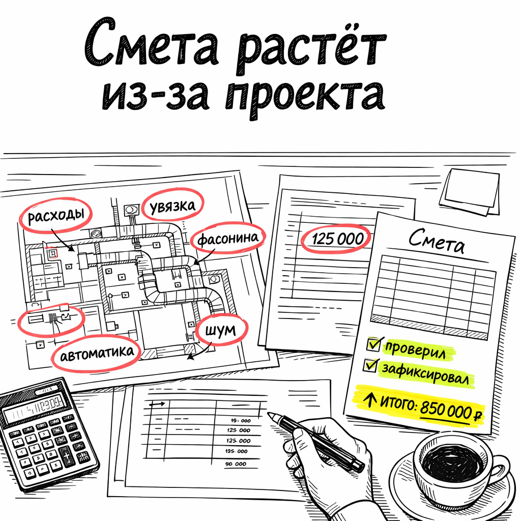 Я это вижу постоянно: приносят “готовый проект вентиляции”, просят быстро посчитать и “чтобы без допов”. Садишься, вроде всё красиво: решётки стоят, установка нарисована, воздуховоды пошли по потолку. А потом — бах: «А почему смета выросла? Вы же считали по проекту!»