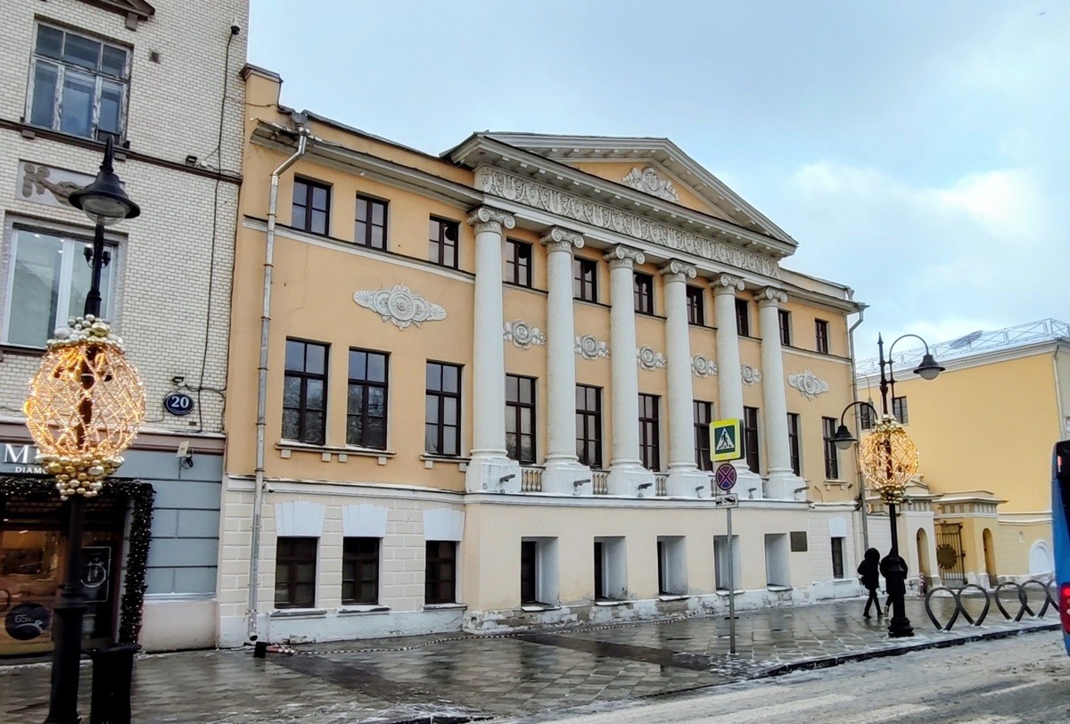На Пятницкой, как раз напротив метро «Новокузнецкая» (дом №18), классический старомосковский особняк.