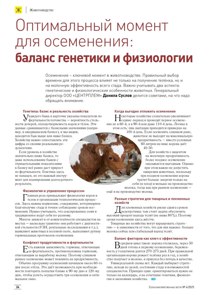 Где он - оптимальный момент для осеменения? https://agri-news.ru/zhurnal/2025/4-2025/optimalnyy-moment-dlya-osemeneniya-balans-genetiki-i-fiziologii/