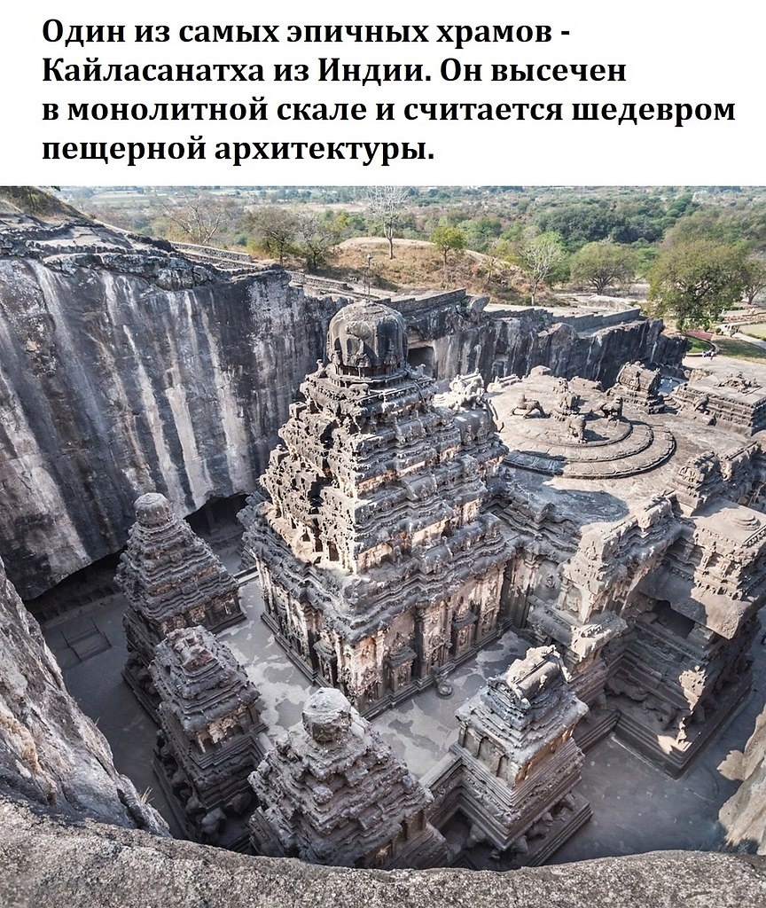 В индийском Эллоре находится объект, который не вписывается в привычные рамки истории. Храм Кайласанатха — не просто святилище. Это дерзкий вызов, брошенный самой природе, и молчаливая загадка, ответ на которую, возможно, утерян навсегда. Официально его создали в VIII веке. Но как? Принято говорить о тысячах рабочих с молотками и зубилами, трудившихся поколениями. Но стоит только вглядеться в детали, и эта простая картина рассыпается. Невозможно поверить, что такое можно создать простыми ручными инструментами. Чтобы оценить масштаб, представьте: перед вами цельная скала. И из нее нужно не просто вырезать статую, а целый храмовый комплекс с многоэтажными залами, галереями, колоннами и изящными скульптурами. Работа велась сверху вниз. Начиная с вершины утеса, мастера высекали крыши будущих строений, спускались ниже, формируя стены, и лишь в конце убирали всё лишнее вокруг, оставляя стоять готовое чудо. Цифры ошеломляют: чтобы освободить этот архитектурный шедевр, пришлось удалит