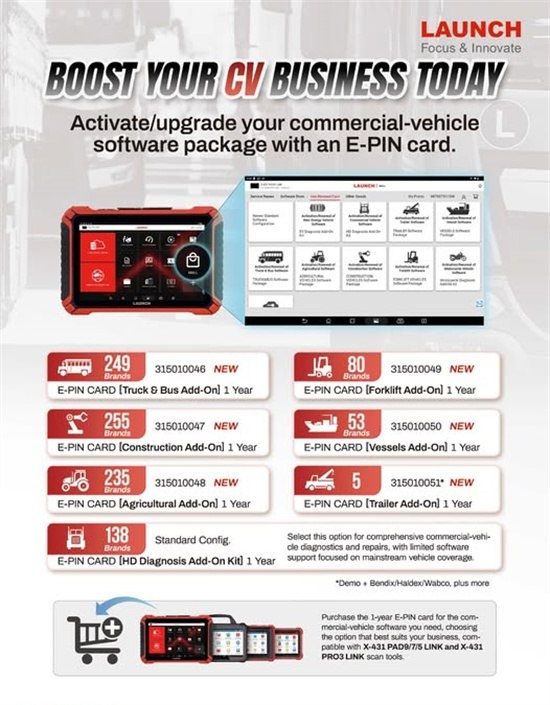 ? 📰 Car Diagnostic Tool Tech Support (Cardiagtool) Компания Launch выпустила Launch E-PIN Card 1 Year Renewals для продления онлайн-обновлений программного обеспечения на один год. Эта услуга заменяет предыдущую и совместима с устройствами Launch X431 PRO5, PAD V, PAD VII и Launch X-431 SmartLink C 2.0 для тяжёлых грузовиков. Для активации продления необходимо указать серийный номер устройства, совершить оплату онлайн и ввести полученный в письме 24-значный пароль. 🔗 Читать полностью #новости #автодиагностика #автоключи #canbus #launch #linbus