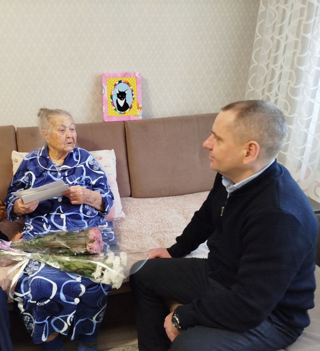 С 100-летием ветерана труда Елену Казакову поздравил председатель комитета социальной защиты Сергей Брежнев. Коллектив комитета пожелал имениннице крепкого здоровья, бодрости, душевного спокойствия и радости. Сергей Брежнев вручил ей поздравительные письма от президента России и главы города Курска. Елена Васильевна помогала фронту во время войны, будучи молодой девушкой: вязала канаты по заказу военных заводов, заготавливала дрова для госпиталя. Она – пример невероятной стойкости и самоотверженного труда. За свой вклад курянка награждена медалью «За доблестный труд в Великой Отечественной войне 1941–1945 гг.». После войны женщина стала бухгалтером – работала до 1982 года, за что удостоилась звания ветерана труда. 📷 Фото предоставлено администрацией города Курска. «ГИ» в МАХ | ВК. Подписывайтесь! ✔️