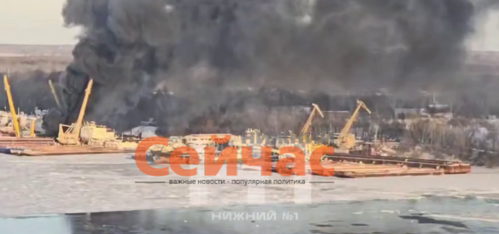 Жители Нижнего Новгорода наблюдают густой черный дым со стороны города Бор. Кадры публикуют СМИ. ЧП произошло в районе Сибирского затона у Борского моста на плавкране «Борской судоремонтной компании». До начала пожара, по словам очевидцев, произошел хлопок. Также сообщается, что на место уже прибыл вертолет и приехала скорая. Горение топлива на площади 100 м2 тушат 48 сотрудников МЧС. Задействовано 15 единиц техники. Нижегородской транспортной прокуратурой организована проверка соблюдения требований пожарной безопасности. Фото: Нижний №1