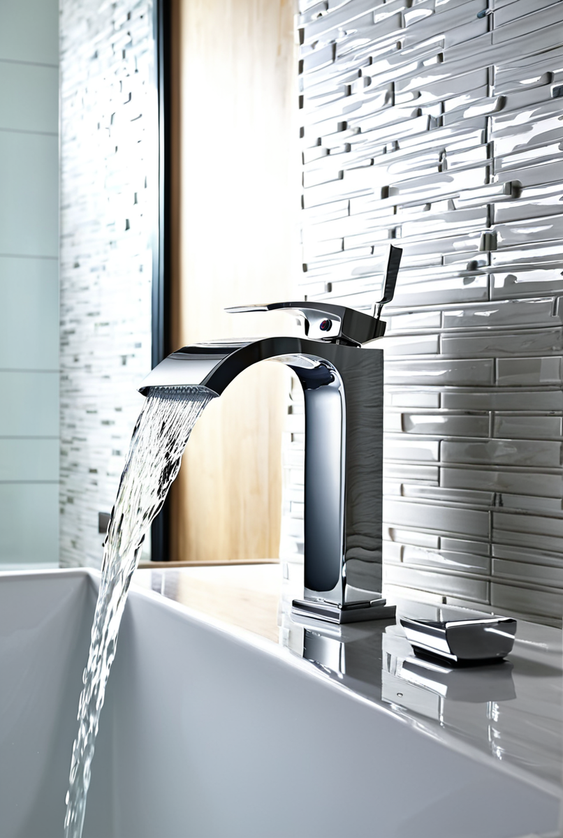 - Каскадный излив: Эффектное решение, создающее широкий поток воды, имитирующий водопад. Быстро наполняет ванну и служит ярким акцентом в дизайне.