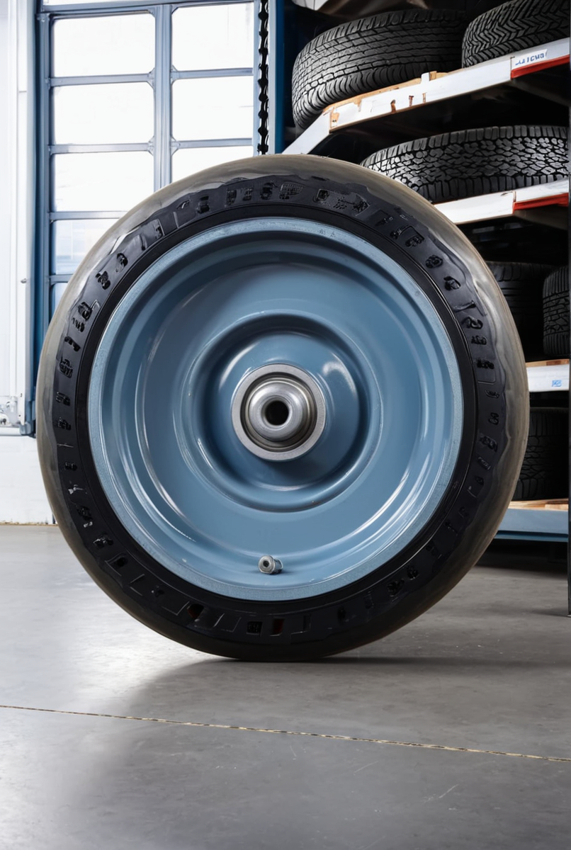 - Колеса с резиновой шинкой: Обеспечивают плавный и тихий ход, амортизируют удары. Идеальны для хрупких грузов и неровных поверхностей, но они уступают в грузоподъемности полиуретану.
