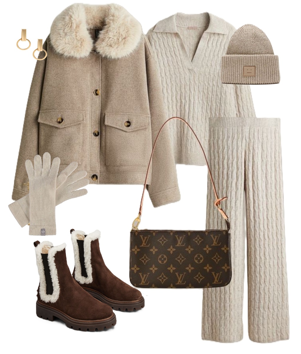 Пальто с мехом лучше всего носить с плотным кашемировым или мериносовым трикотажем, делая акцент на мягких фактурах и спокойной палитре.