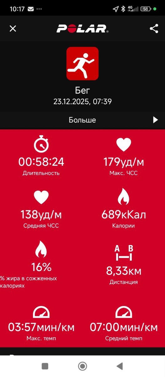 Что за фигня в начале была с датчиком хз, бегу, спокойно дышу носом, а пульс 179 😲. Постучал чуть по датчику, вернулись постепенно норм значения. Надеюсь это был всё-таки сбой датчика, а не сердца 🙂