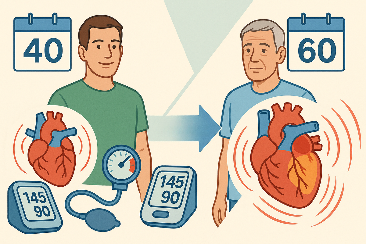 Высокое давление в 40 лет ➡️ больше нагрузка на сердце в 60 лет