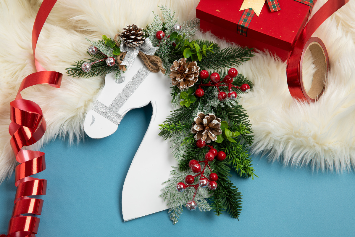 Хвойные веточки, елочки и шишки – классика новогоднего декора. В нашей статье покажем, какие украшения с ними получилось создать у наших мастеров: от уютных композиций на стол до эффектных панно. Все-все-все можно легко повторить – к каждой задумке приложена инструкция и список материалов из «Леонардо». Приятно просмотра и вдохновения! Все просто! Вырежьте из куска пенокартона голову лошади, а декоративными веточками сформируйте для нее гриву. Благодаря еловым веточкам грива получится пышная и живая. Красные ягодки и шишки добавляют нарядности и акцентов. Результат: симпатичная лошадка с природной эстетикой. Новый взгляд на праздничные свечи: поместите их в фонарики! У нас есть деревянные модели фонарей, которые вы сможете задекорировать на свой вкус. Например, одному мы придали снежного мерцания краской и украсили хвоей, ягодками и шишками. Фонарик можно разместить на столе, полке или подоконнике — везде будет смотреться уместно. Обычный деревянный спил тоже может стать подсвечником.