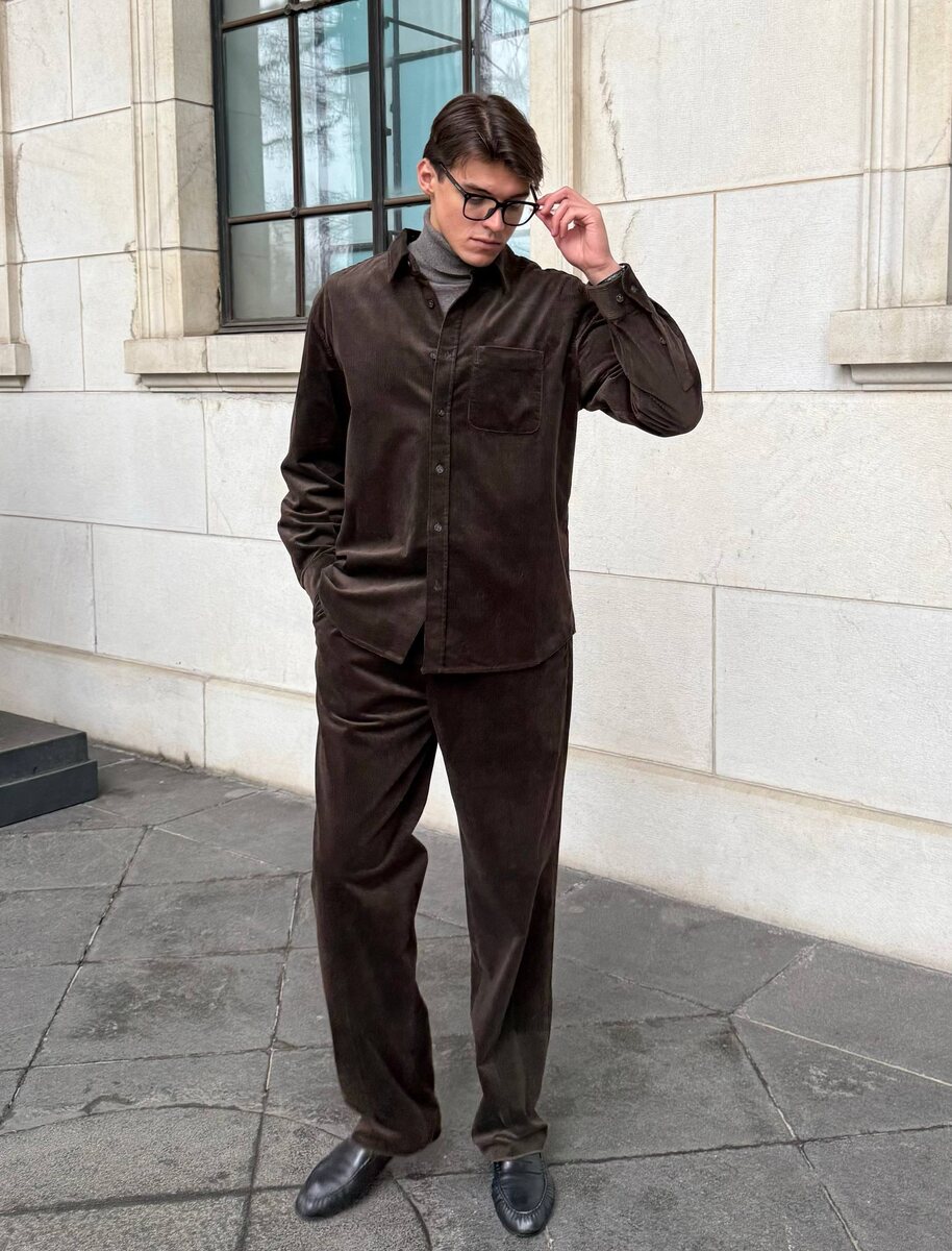 ? Мы сшили его из французской ткани на основе хлопка — дышащей и легкой, в тонкий, бархатистый рубчик. В этом сезоне рубашка стала более компактной и аккуратной, ее по-прежнему удобно носить поверх футболки или тонкой водолазки. Брюки мы сделали менее широкие, чтобы их было проще сочетать с другими вещами. Они прямые по силуэту, слегка зауженные книзу, на эластичном поясе с замшевым шнурком. Эти и другие изделия для гардероба из коллекции 12 STOREEZ MEN ждут вас на сайте, в приложении и магазинах 🤍12 STOREEZ