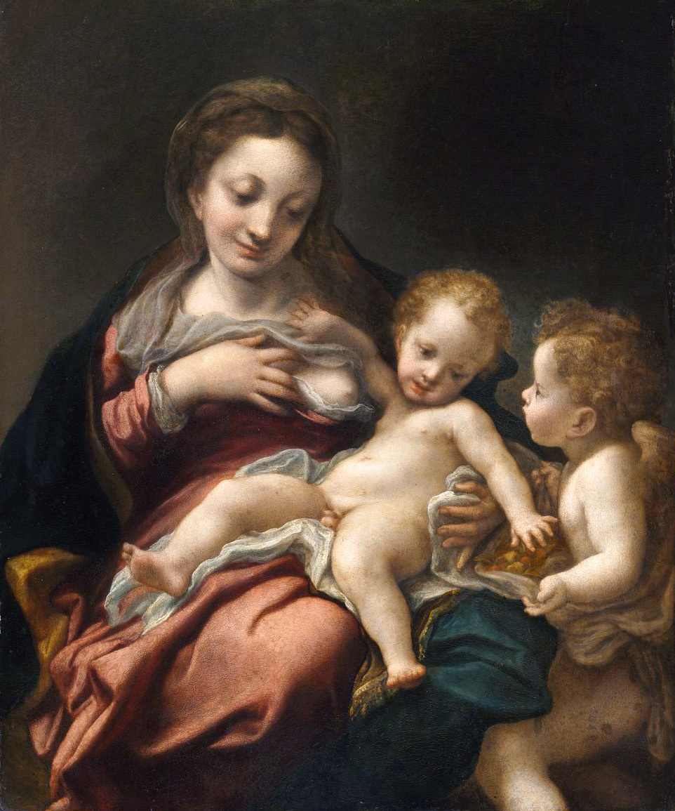 «Богородица, кормящая младенца Христа (Богородица и младенец с Ангелом)» Корреджо